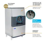 Vending Ice Dispenser with Built-In Water Valve, touchless lever, floor model, 30"W x 32"D x 82"H, AHRI certified 180-lb capacity, designed for dice or half-dice ice type, fills containers up to 11" high, stainless steel exterior with vinyl trim, accepts 22" or 30" dice or half-dice machines, cULus, CE, NSF, ADA compliant